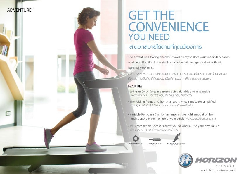 Adventure 1 ตอบโจทย์การวิ่งด้วยฟังก์ชันที่มากขึ้น ใช้งานได้สะดวกสบายHorizon Fitness เราผลิตอุปกรณ์ออกกำลังกายให้เข้ากับ Life style ของผู้ใช้ เราเลือกสิ่งที่สมบูรณ์แบบให้ตรงกับความต้องการที่หลากหลาย เราใส่ใจในทุกรายละเอียด ทั้งการออกแบบ พื้นที่หรือแม้แต่ตารางเวลาชีวิตของผู้ใช้ เพื่อให้ Horizon fitness ตรงกับความต้องการและชีวิตประจำวันของลูกค้ามากที่สุด ทุกอุปกรณ์ออกกำลังกายของ Horizon จะทำให้คุณวางใจได้ว่า เราได้มอบประสิทธิภาพ ความทนทานที่สูงเพื่อเป็นส่วนหนึ่งในการถึงเป้าหมายของการออกกำลังกายในทุกๆวันโดยไม่สะดุด ทำให้ทุกการออกกำลังกายเป็นการผจญภัยครั้งยิ่งใหญ่ของคุณ ลู่วิ่งซีรี่ย์ Adventure อัดแน่นไปด้วยคุณสมบัติทั้งด้านประสิทธิภาพที่มากขึ้น เหมาะกับการใช้งานที่บ้านมากขึ้น ตอบโจทย์สำหรับผู้ที่เป็นนักวิ่งระดับกลางหรือชอบออกกำลังกายประเภทเดิน ลู่วิ่งซีรี่ย์นี้ได้ออกแบบคอนโซลออกมาให้เรียบง่ายเหมาะกับการใช้งาน สะดวกสบายในการควบคุมไม่ว่าจะเป็นการปรับความชันหรือความเร็ว มีลำโพงที่เชื่อมต่อกับอุปกรณ์เพื่อฟังเพลงได้ ![]() ![]() ![]() ![]() ![]() ![]() ![]() ![]() ![]() |