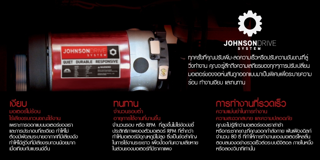 . มอเตอร์ที่ผลิตขึ้นเองของ Johnson ช่วยให้มั่นใจได้ว่าลู่วิ่งไฟฟ้านั้นมีคุณภาพ เงียบและมีประสิทธิภาพ